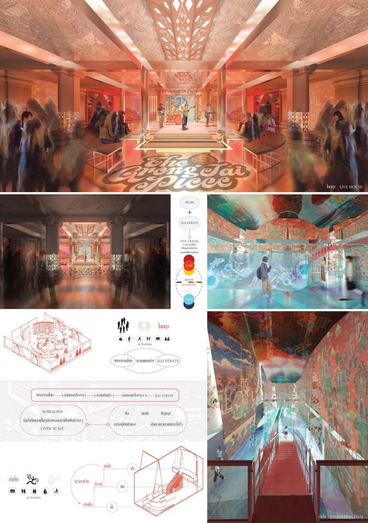 ภาพแนวคิดและตัวอย่างผลงานรางวัลชนะเลิศ Gold Winner “ศูนย์วัฒนธรรมไทยสร้างสรรค์เพื่อสนับสนุนศิลปิน